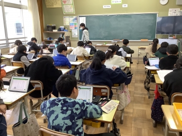 今週1月26日(月)1・2限目に、5年生を対象とした「みえスタディ・チェック」を行いました。これは、児童の確かな学力を育むために三重県教育委員会が実施しているテスト形式の取組で、県内全ての小学校4・5年生が対象となっています。年に2回実施しており、3学期は5年生のみが対象で、国語・算数の2教科で行います。以前は紙の用紙のみで行っていましたが、今は一人一台端末が整備された環境を生かし、各自がタブレットも活用しながら回答しています。5年生は皆、これまで学習してきたことを思い出しながら一生懸命問題に取り組んでいました。