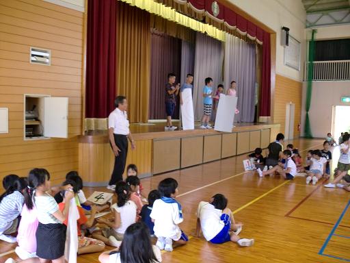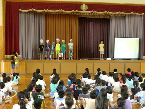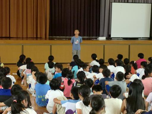 暑い体育館でしたが、盛り上がった7月の児童集会でした。