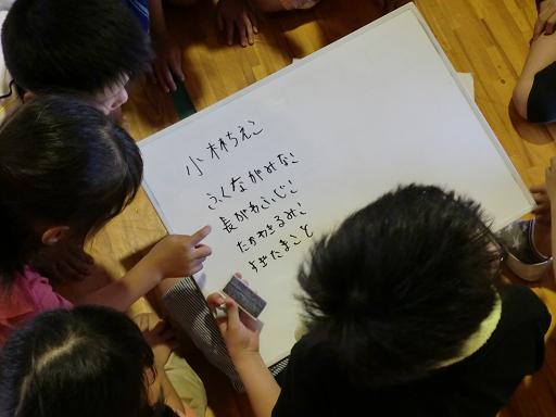 縦割り班でのゲーム その1は、先生の名前当てクイズでした。