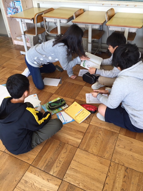 各グループは3~4人組です。「3人寄れば文殊の知恵」です。しっかり知恵を出し合いましょう。