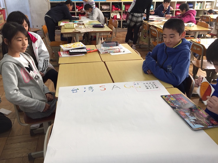 11/21(火)5・6年縦割りグループによる国際理解学習が始まりました。