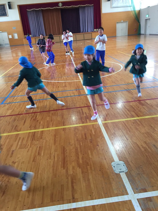 体育館では、氷おにをしました。広い体育館で、園児さんは大喜びです。
