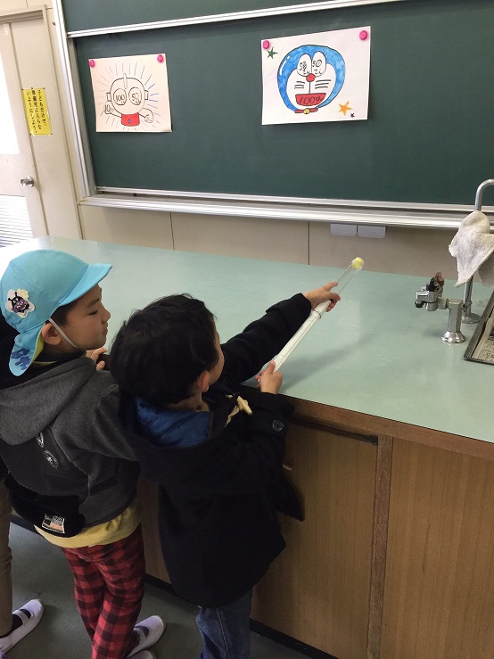 2/9(木)、近隣の保育園、幼稚園から来年度入学する園児さん63名を招いて、一日入学を行いました。