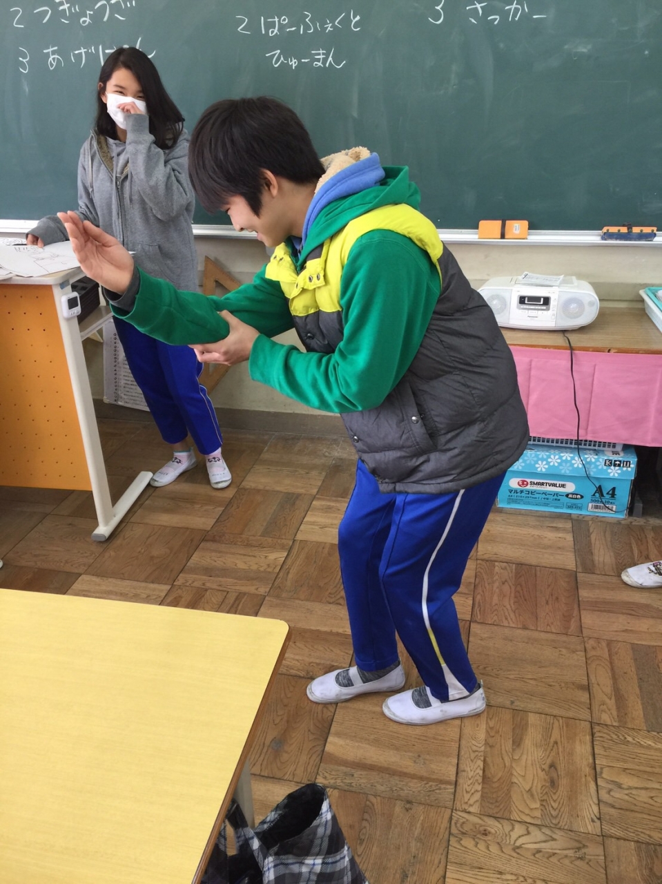普通教室では、学校クイズと今話題のゲーム(なんでしょうか?)とジェスチャーゲームをしました。