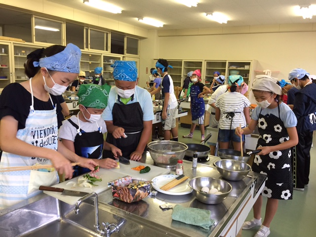 6/30(金)6年生は、家庭科の時間に自分で作ったご自慢のエプロンを身に着け、朝食作りをしました。