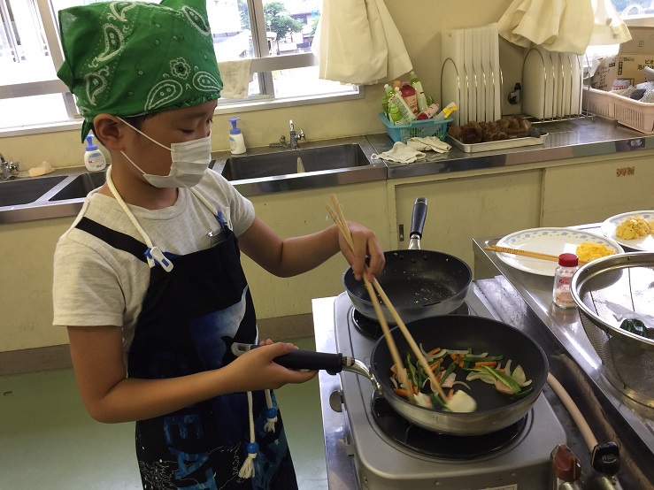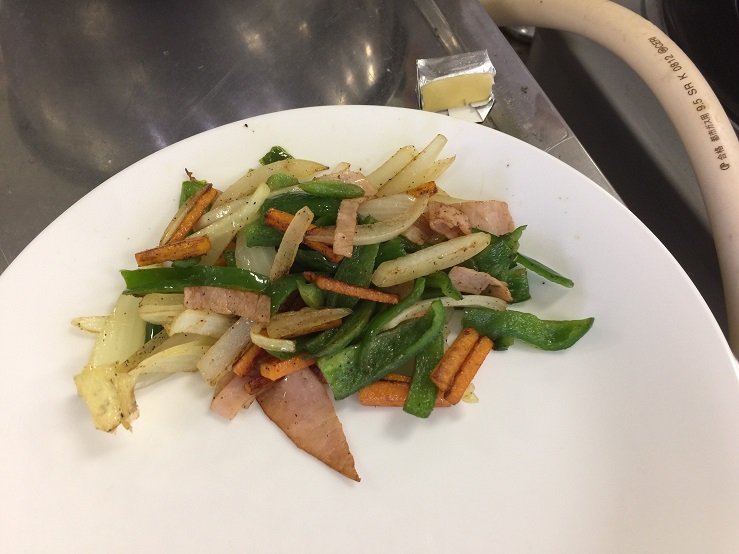 もちろん、炒めるのも自分ひとりで、しま~す! プロ並みの返しです。