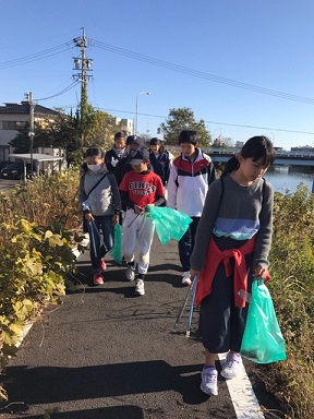 ふれあい清掃とは、「西橋内中の生徒の皆さん、地域の方々と協力して、校区のゴミ拾いをする」というもので、長い間続いているものです。