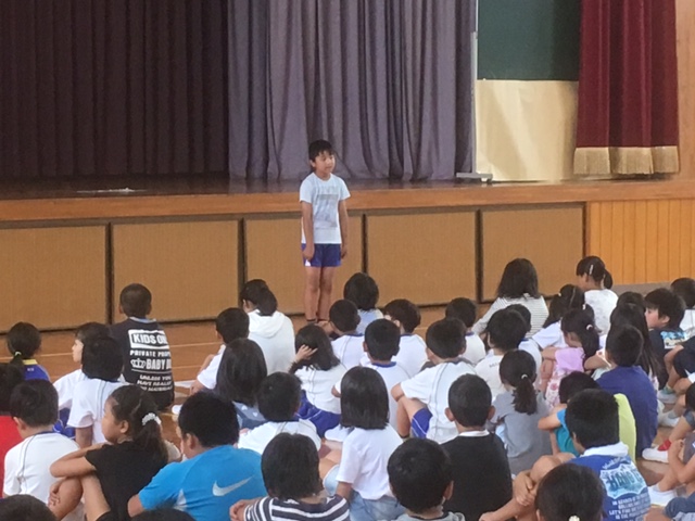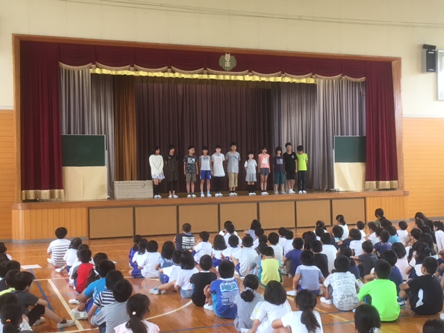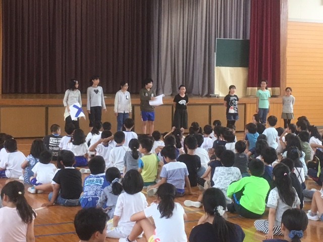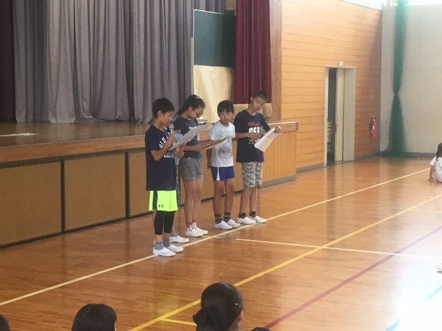 その後、児童会役員さんから、6月の生活目標「ろう下を静かに歩こう」の発表がありました。