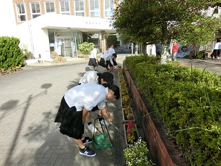 本校は毎月1回、月曜日の早朝に学校周辺の清掃活動を行っています。