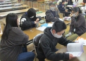 毎週水曜日の放課後に「課外講座」を行っています。参加者は、英語検定や漢字検定の合格を目指して学習したり、授業で分からなかった内容を大学生に教わりながら学習を進めています。昨日は、3年生の参加者が多く、3学期に行われる入試に向け、受験勉強を行っていました。課外講座に参加している人は、やらされる勉強ではなく、目的をもって主体的に学ぼうとしています。こうした取組は、必ず良い結果として自分に返ってくるはずです。三重大学生も学習ボランティアとしてたくさん参加していますので、できるだけ活用するようにしましょう。