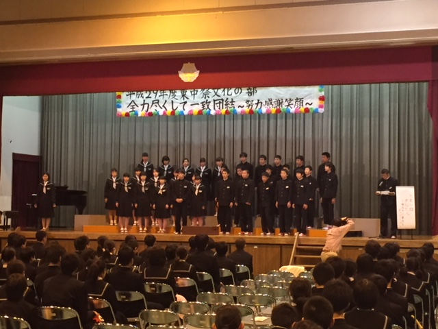 二日目は各学級が力を入れてきた合唱コンクールです。学級のカラーを生かしたそのクラスでしか表現できない合唱を披露してくれました。審査の結果3年1組と3年3組が学校代表として、津南地区中学校音楽学習発表会に出場することになりました。また素晴らしい歌声を披露してくれることでしょう。