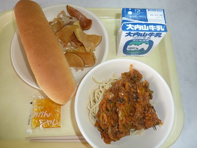 ミートソースにも、香良洲給食の定番「こまつな」が入っています。