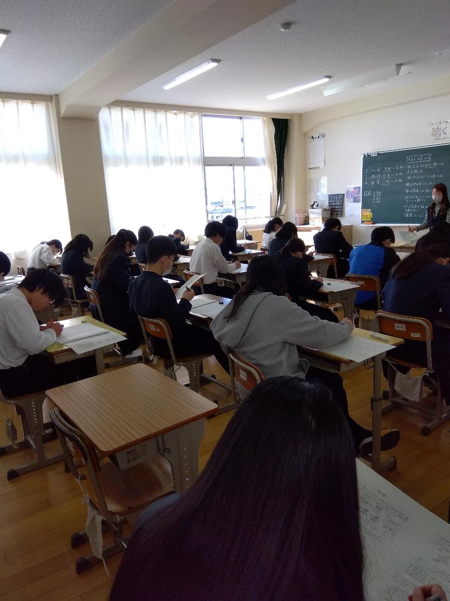 本日27日(火)~29日(木)の日程で、1,2年生は今年度の学年末テストを行っています。3年生は模擬入試という事で、入試問題を想定したテストにチャレンジしています。いつも言いますが、定期テストは自分の到達度を確かめるためのもの。どこまでが理解できていて、何に躓いているのかを把握して、改善につなげることを目的に行っています。それをやったかやらなかったか、その積み重ねが、自分の進路選択の時に大きなカギになります。一人ひとりがしっかり次につなげてくださいね。