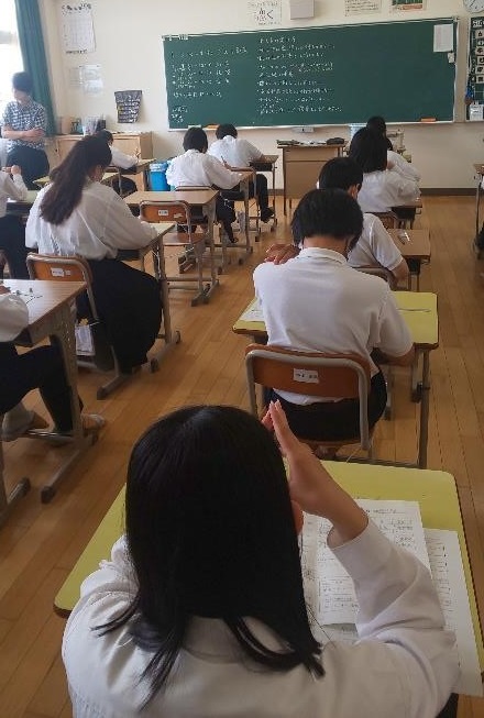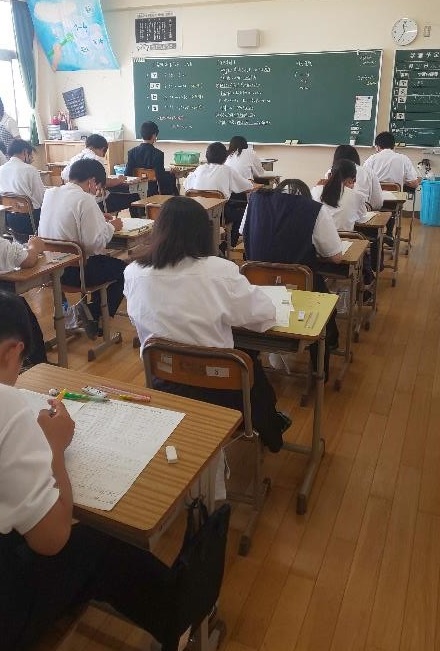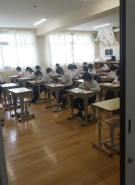 初の定期テストに取組む1年生