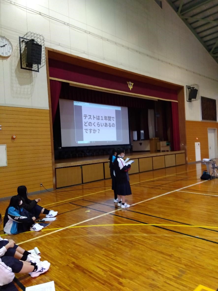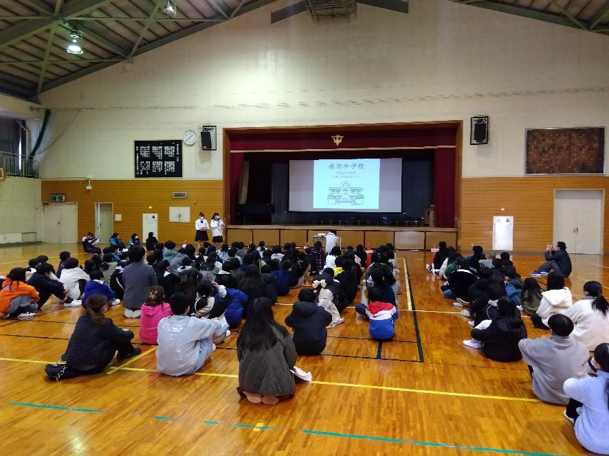 6日の午後、南郊中校区の小中交流会を開催しました。高茶屋小学校と雲出小学校の6年生を招いて、生徒会役員の進行で授業見学をし、学校の説明や事前に小学生から出された質問への回答を行った後、部活動の様子を見学してもらいました。自分も、体育館で話をさせていただきましたが、6年生たちは、しっかりと顔をあげて聴いてくれていました。今日の交流会で、少しでも不安が解消され、楽しみな気持ちが増してくれているといいなあと思います。4月の再会が楽しみです。