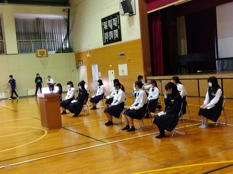演説の中では、「3年生がこの学校でよかったと思って卒業してもらいたい」「サスティナブルな学校にしたい」等の思いや、そのためにしたいことなどが語られ、全校生徒が聴きいっていました。そこで語られたことを実現していくのは、私たち1人ひとりです。