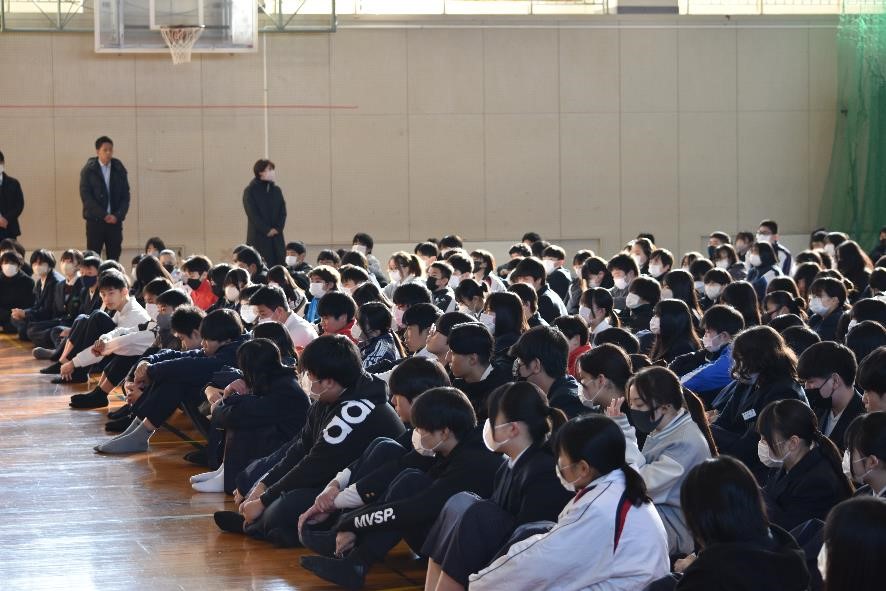 例年であれば「明けましておめでとうございます」とみんなで新年と、無事に学校に戻ってきたことを喜ぶところからのスタートですが、今年については、様々な状況を鑑みおめでとうではない始まり方をしました。生徒たちに話した内容は、ほぼ今日配布した学校だよりの内容と同じですのでまたご一読いただき、お家でもお話しいただければと思います。