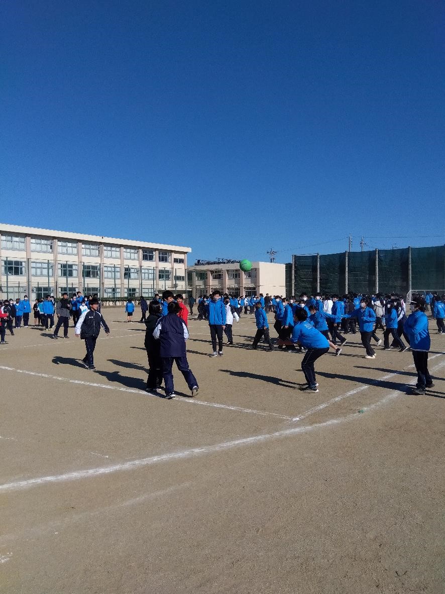 17日(水)の5限目は、生徒会主催の全校レクでした。1月とは思えない暖かさの中、1~3年生各クラス+教員チームでドッジボールを楽しみました。残念ながら全員がそろって参加とはいきませんでしたが、学年をこえた対戦もあり、全校で盛り上がっていました。