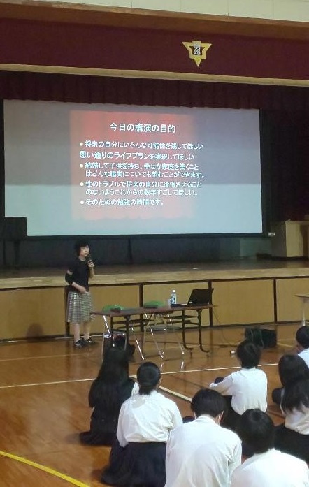 1年生では、生徒もお手伝いで参加しながら、クイズも交えて視覚に障害のある方の生活や点字についてお話しいただいたり、濱野先生の生き方についてお話しいただきました。3年生では、今後の生活を見据えて、望まない妊娠が生活にどのような影響を及ぼすのか等について、具体的に丁寧にお話をしていただきました。