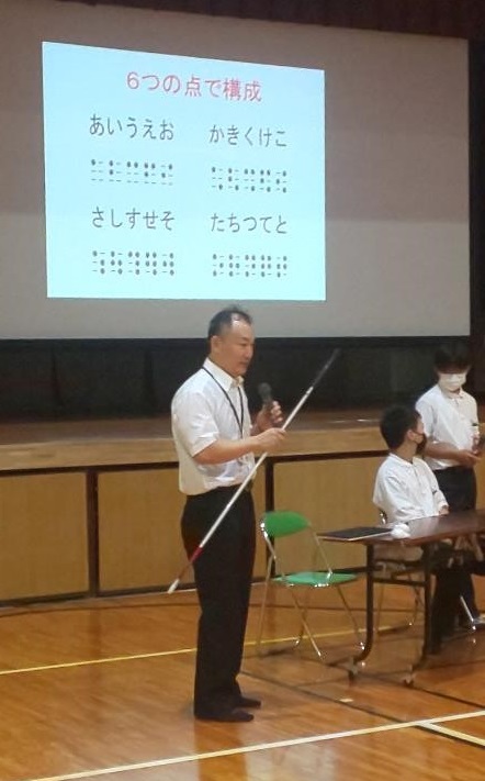 前回、ネット依存防止の取組で大学の先生にお話しいただいたことを書きましたが、今週は本当にいろんな方に来校いただきました。木曜日には、1年生の出会い学習で盲学校の濱野彰浩先生、3年生の思春期ライフプランの取組で、金丸産婦人科の金丸恵子先生にお越しいただき、それぞれお話をしていただきました。