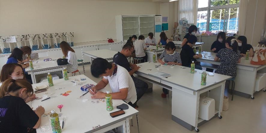 8月5日(土)に、本校生徒の保護者でもある白藤さんを講師に迎え、PTA文化教養部のレザークラフト体験が行われました。参加者のみなさんは、いろんなお話をしながら和気あいあいと、時には話するのを忘れるほど没頭しながら作業を進め、それぞれにオリジナルのステキな作品を仕上げていました。