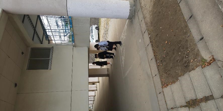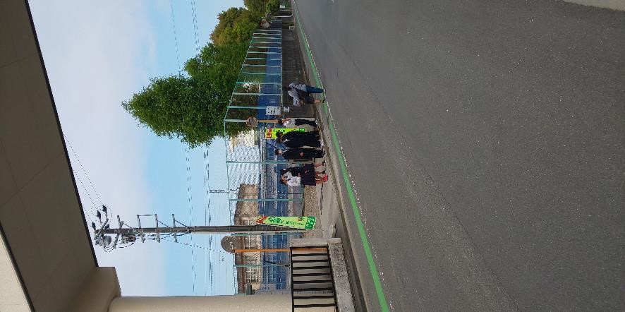 駐輪場、テニスコート横、昇降口前に分かれて、それぞれ元気な声で「おはようございます!」と声をかけていました。たくさんの生徒たちが、「おはようございます!」と挨拶を返してくれて、とても気持ちがよかったです。