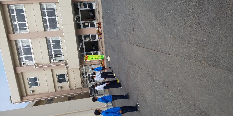 20日の朝に、体育安全委員会のあいさつ運動を行いました。
