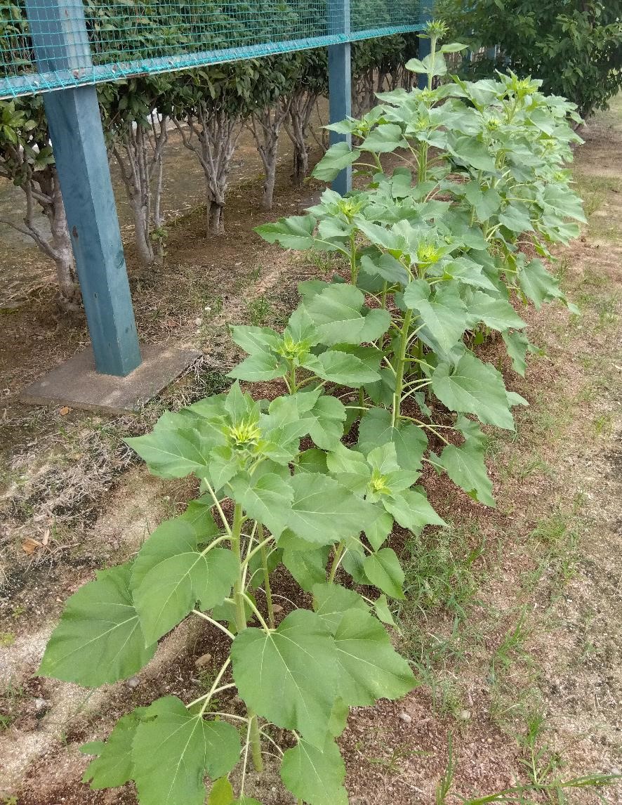 猛暑や台風にも負けずすくすく育つヒマワリたち