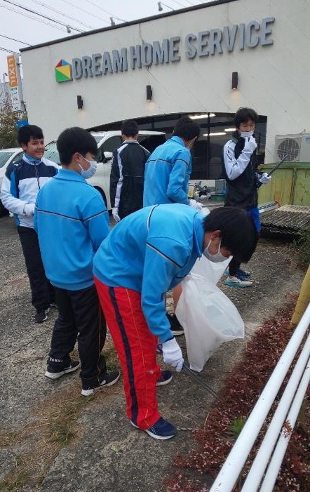 12月17日(土)に、生徒会主催の地域ボランティア清掃を行いました。以前は、小学校にも呼び掛けて、大々的に開催をしていましたが、コロナ禍でできなくなり、3年ぶりの開催ということで、今回は規模を縮小し、中学校だけで学校周辺の清掃をするという内容となりました。それでも、参加生徒は150名以上、民生児童委員さんたちや青少年育成指導協議会等の地域の方々や、保護者・教職員を合わせると、200名くらいの参加者があり、みんなで学校周辺をきれいにしました。自分も、1つのグループと一緒に活動しながら、他のグループの写真を撮って回っていましたが、みんな本当に楽しそうに活動をしていました。活動後、青少年育成指導協議会さんからお茶をいただいて解散となりました。地域をきれいにすることを「楽しい」と思える気持ち、地域の方々と一緒に活動する機会の大切さを改めて感じることができました。ご参加いただきました、地域の方々や保護者の皆さん。本当にありがとうございました。