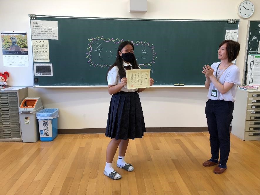 本来なら、クラスで行うのですが、今回は諸事情により国際教室で行われました。そんなこともあり、クラスの友だちの前でのスピーチはありませんでしたが、文化祭で全校に向けてスピーチをしてくれるので、楽しみにしていようと思います。