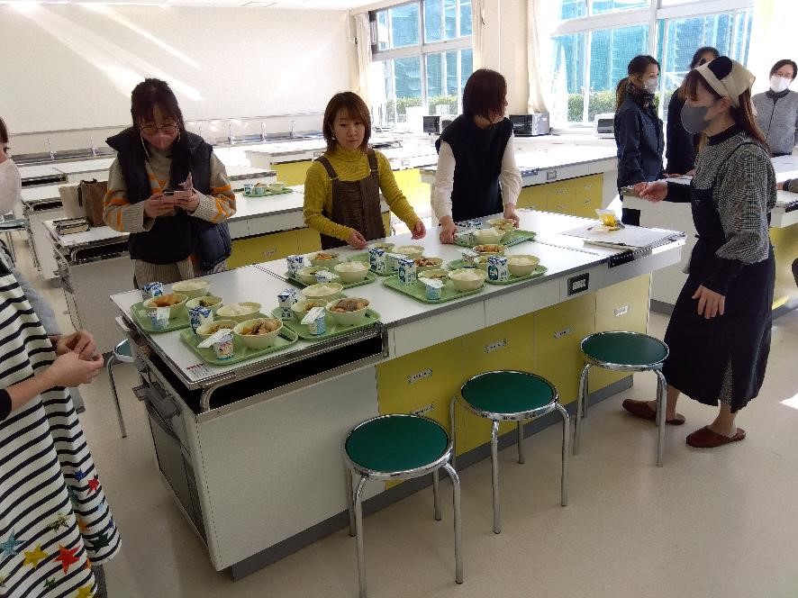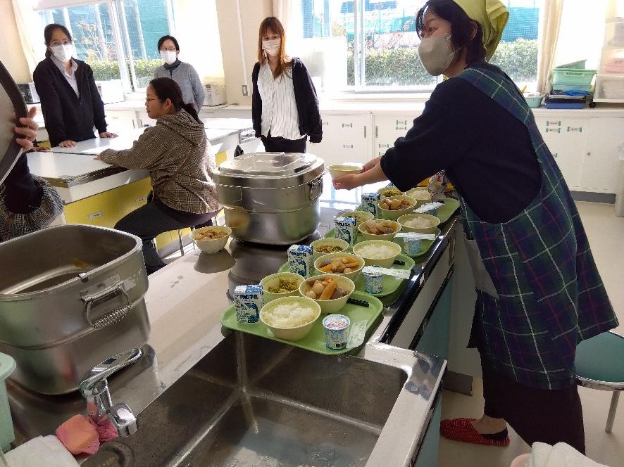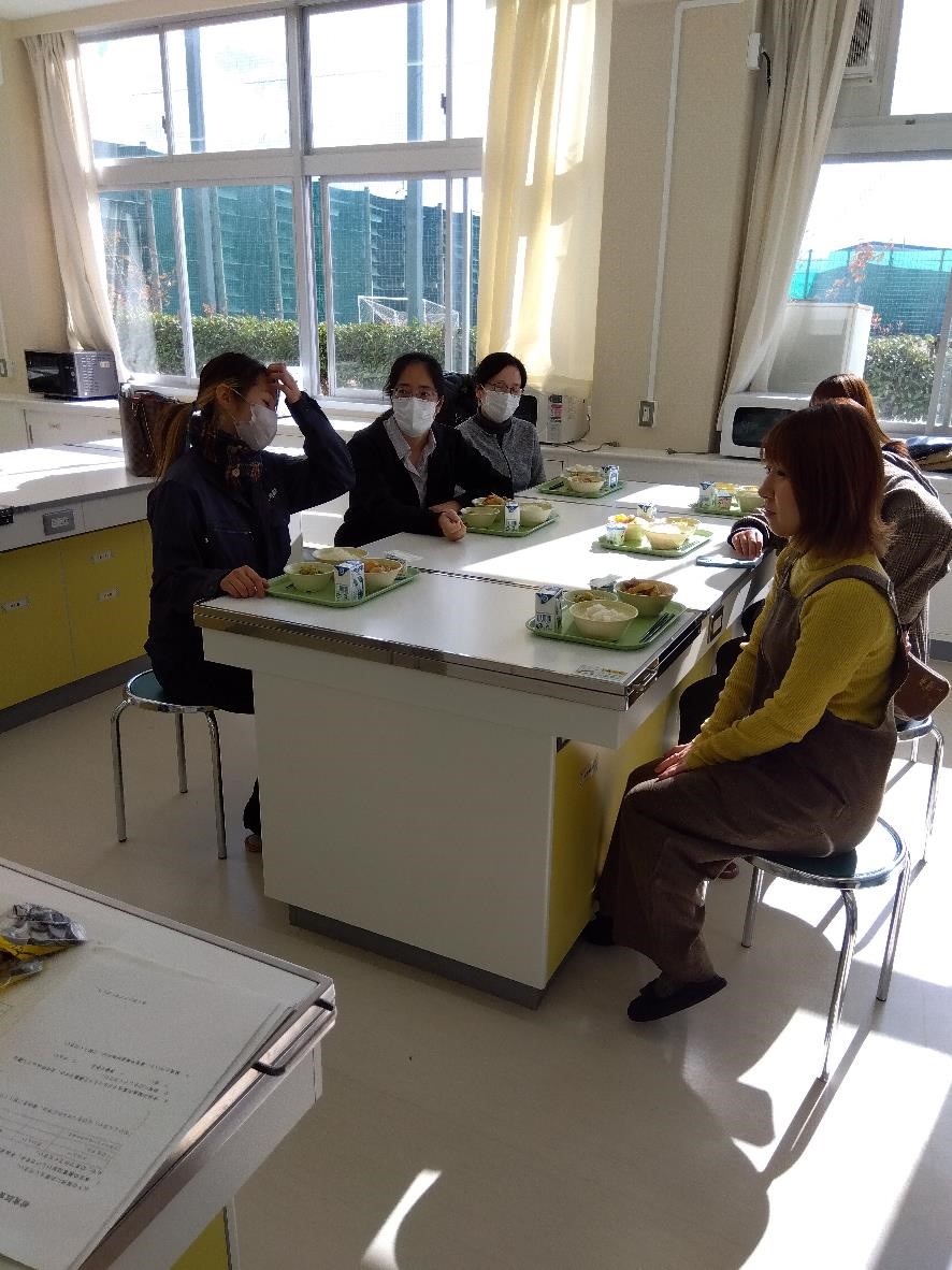 13日(月)に、PTA文化教養部主催の給食試食会が開かれました。調理室で、参加者の方々で配膳し、担当の教員と一緒に給食を楽しんでいただきました。