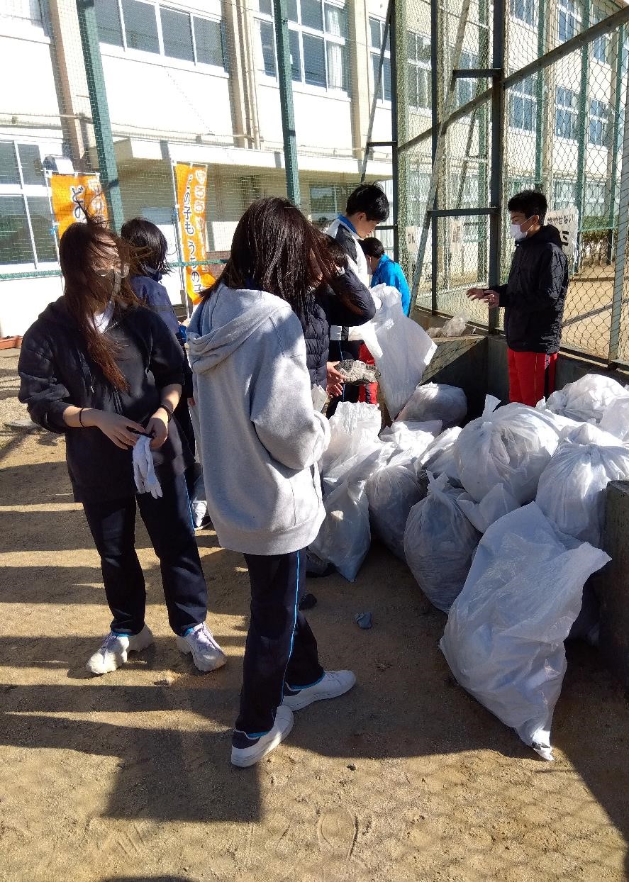 2日(土)に、本校生徒会・南郊地区青少年健全育成協議会主催の、地域ボランティア清掃を開催しました。風が強く寒い日でしたが、150名以上の生徒・教員と、30名を超える地域の方々にご参加いただき、約1時間校区内の清掃を行いました。自分が一緒に行ったグループでは、強風で飛んでしまうゴミに苦戦しながらも、楽しみながらゴミを拾っていました。これからも、地域をもっと良くしようという気持ちを持ち続けてほしいと思います。また、今回ご参加いただいた地域の皆様、本当にありがとうございました。今後ともよろしくお願いいたします。