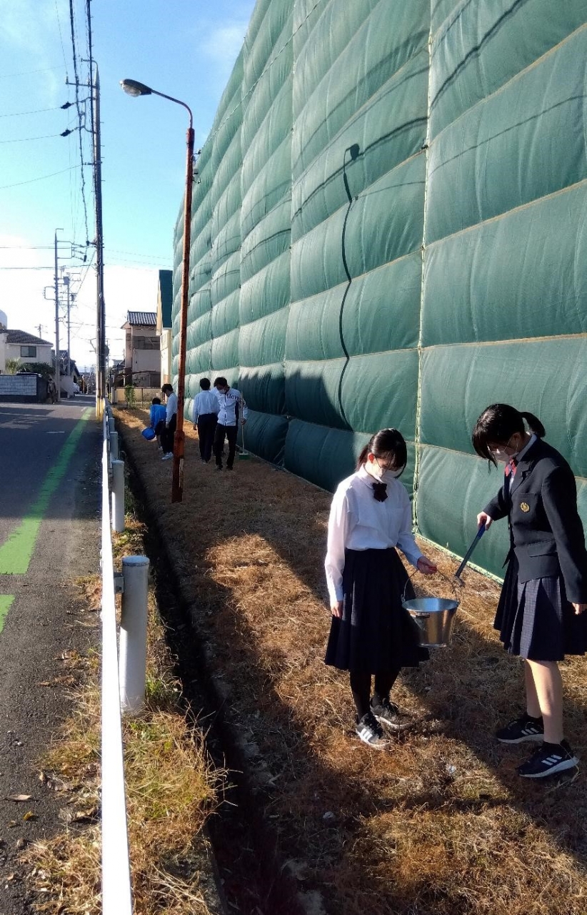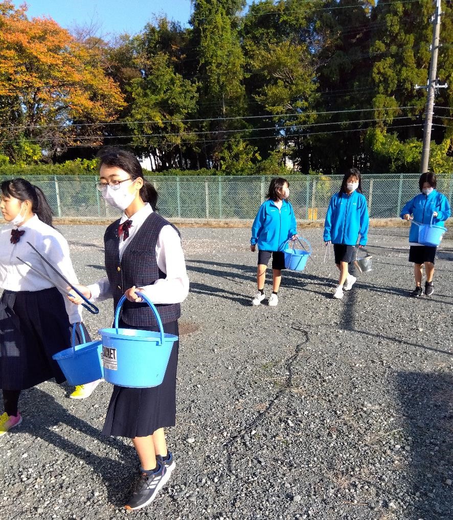 今回も100人を超える生徒や教職員が参加し、学校の周りをきれいにしました。参加している人たちが、「こんなにたくさん拾いました」と笑顔で報告してくれるのが嬉しかったです。一方で、「何でこんなゴミが?」と思う物が捨てられていたりもして、今回のような取組を地域にも発信しながら、ともに考えていただく機会を持たねばとも思いました。