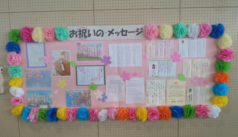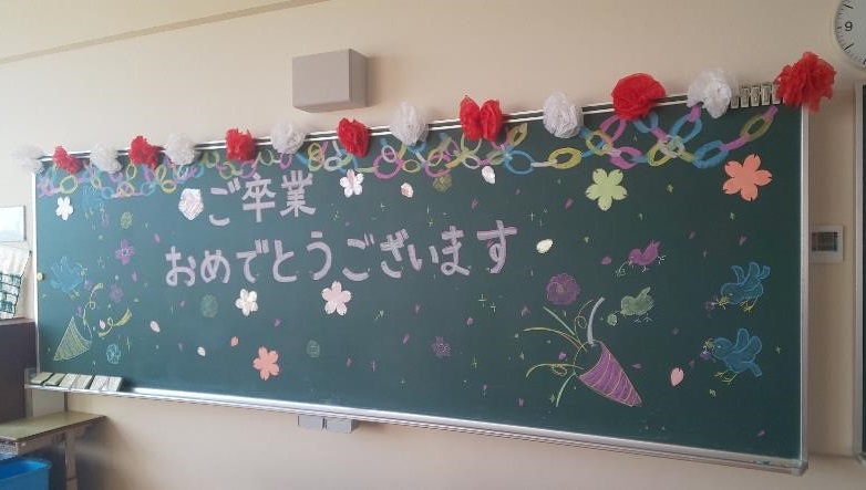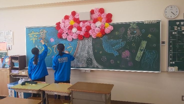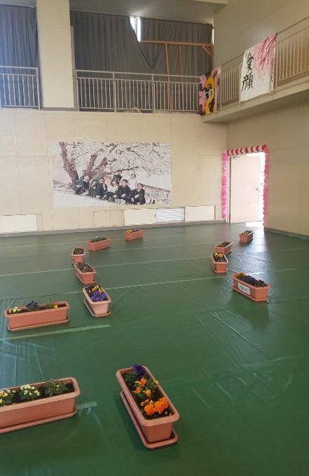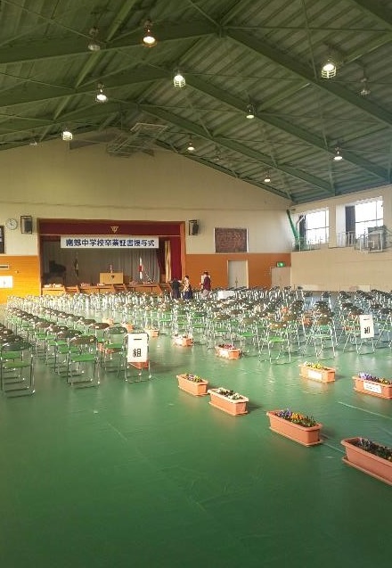 10日の午後から、全校で卒業式の準備をしました。1,2年生は、代表者しか式には出られない分まで、卒業生への思いを込めて清掃や飾りつけ、式場準備をしました。あとは本番を待つばかりです!!