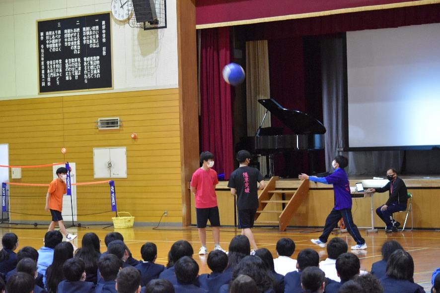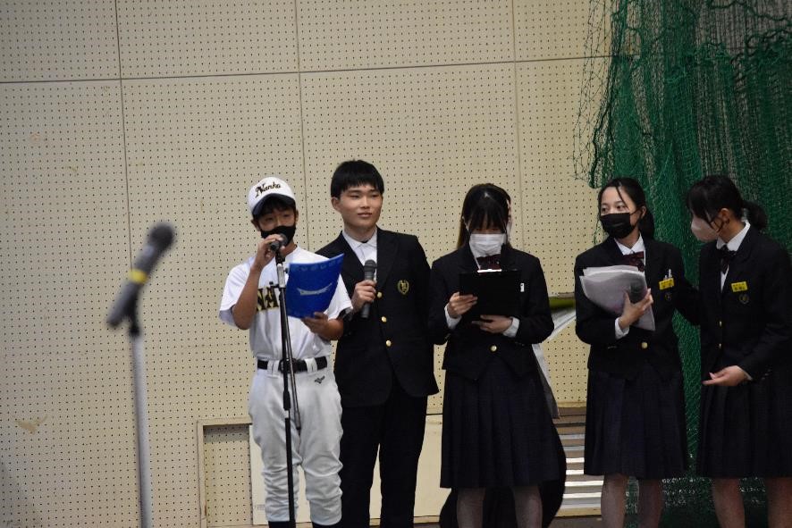 14日(金)の5,6限目に、新入生歓迎集会を行いました。新入生の入場の後、みんなで校歌を歌い、生徒会長の挨拶、新入生代表の挨拶と進んでから、部活紹介を行いました。