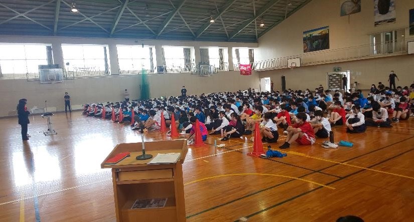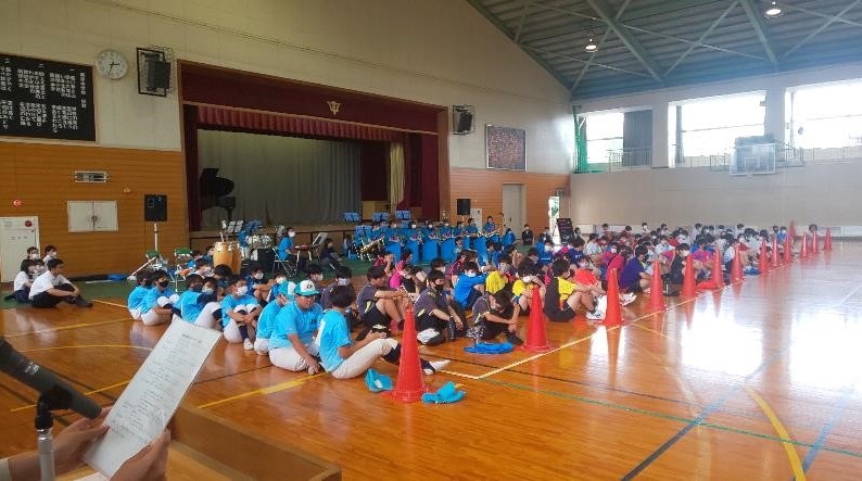 30日(金)の5,6限目に、全校集会と壮行会を行いました。全校集会では、人権サークルから、以前から全学年で取り組んでいる「放っておきたくない言葉」について一緒に考えていこうという呼びかけがありました。自分の方からも、登録制で地域で活動するボランティアを始めたいという話をさせていただきました。