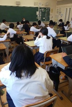 本校では、以前から紹介しているように、学び合いを通して生きる力をつけるために、様々な取り組みをしています。取り組みの1つとして、机の並びも、学び合いがしやすい「コの字」の配置にしていたのですが、コロナ禍の影響で、ずっと前向きにせざるを得ない状況が続いていました。