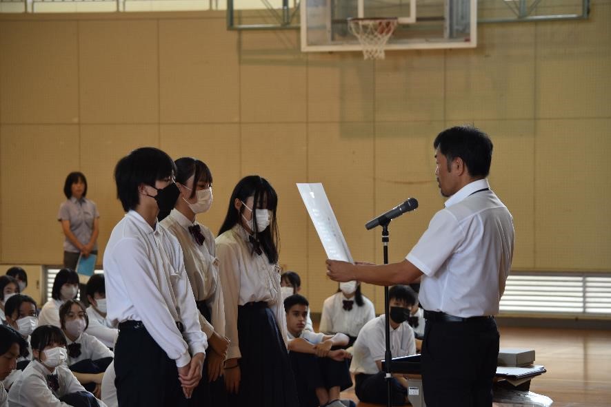 部活の表彰に加えてNANKO手伝隊にボランティア活動証明書も渡しました