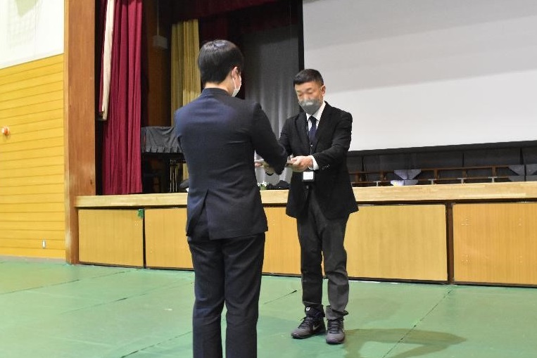 本当に早いもので、卒業式がいよいよ来週に迫ってきました。7日には、2年生がシート引きやいす並べ等の会場準備をしてくれて、出来上がった会場で3年生の卒業記念行事が行われました。まず初めに、中学校で使ったタブレットの返還式を行い、その後在校生代表で参加した生徒会役員の司会により、1,2年生からのビデオメッセージの上映、3年生教員の出し物、お世話になった方々からのビデオレター上映などがありました。午後からは、卒業式練習も行いました。いろな人たちの思いを受けて、胸を張って卒業してほしいと思います。