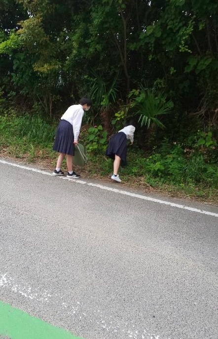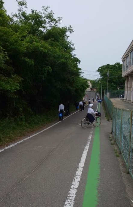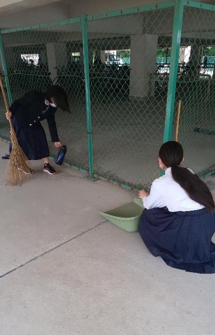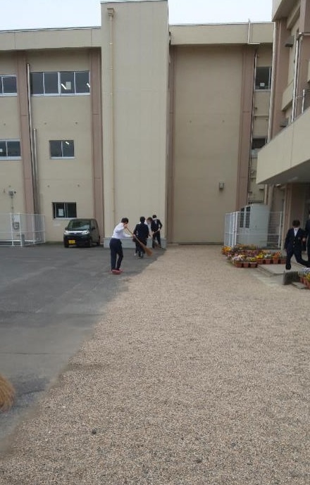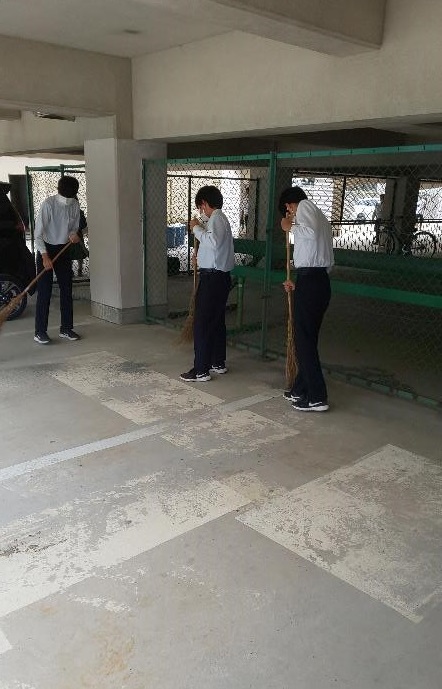 前日までに呼び掛け、100人以上の生徒と教員が参加して、駐輪場や、学校周りの道路、非常階段、昇降口付近等のゴミ拾いや掃除を行いました。全校生徒数の1/3以上が参加してくれたことになります。