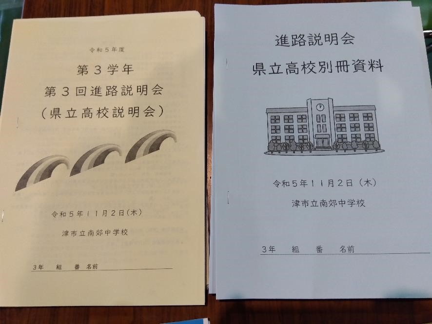 9月の私立学校説明会に続き、今回は県立学校についての説明会でしたが、1,2年生の保護者も含めて沢山の保護者の方々にご参加いただいたこと、本当にありがとうございます。いよいよ3年生にとっては、再来週に進路に向けた三者懇談会です。じっくり考えて、自分らしく進路を決めてほしいと思います。