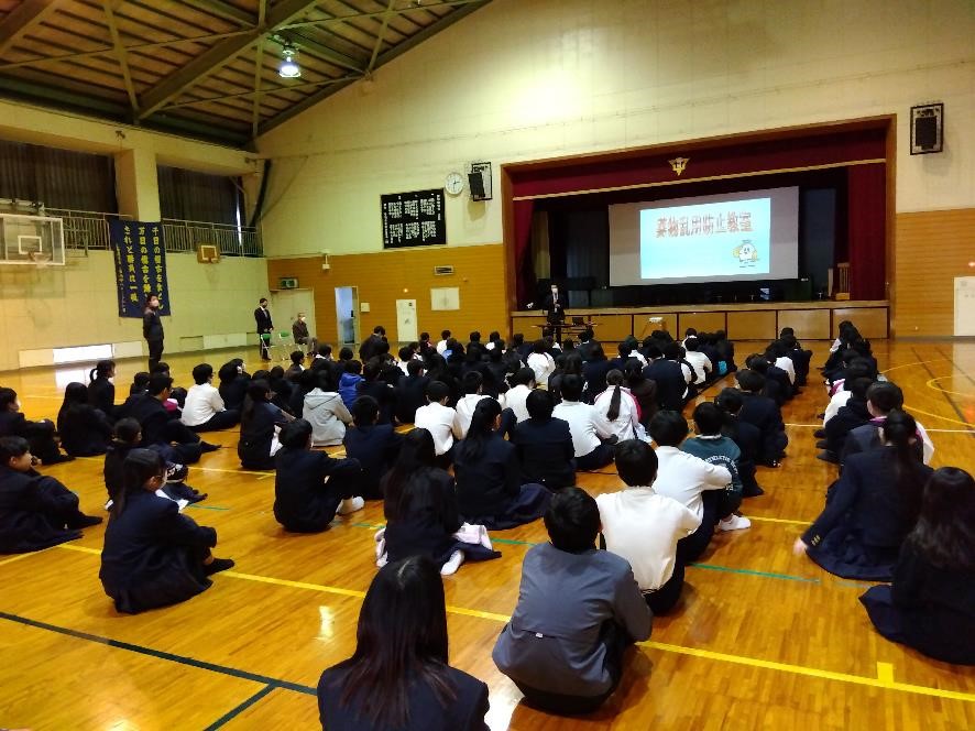 12月1日(金)に、津南警察署と警察協助員の方を講師にお招きして、1年生で薬物乱用防止教室を開催しました。冒頭で、現在報道等で取り上げられている事件等も紹介していただきながらのお話で、生徒たちにとって全く知らない、関係ない話とは感じなかったのではないかと思います。以前、PTA研修部の事業でも、ダメ絶対教室を開催してもらいましたが、色んな機会をとらえて薬物の恐ろしさや、軽い気持ちで手を出してはいけないことなどを学んでいく事が大切です。