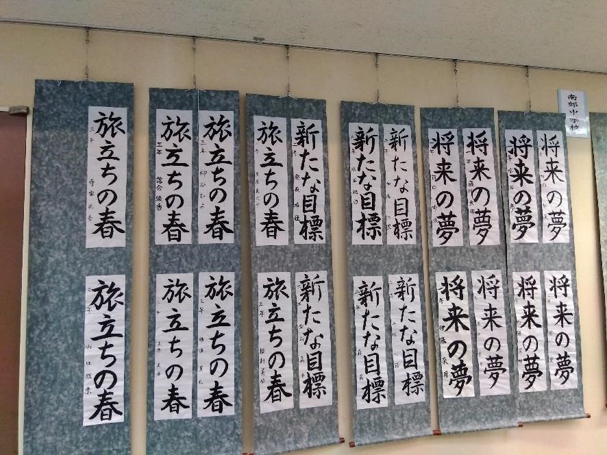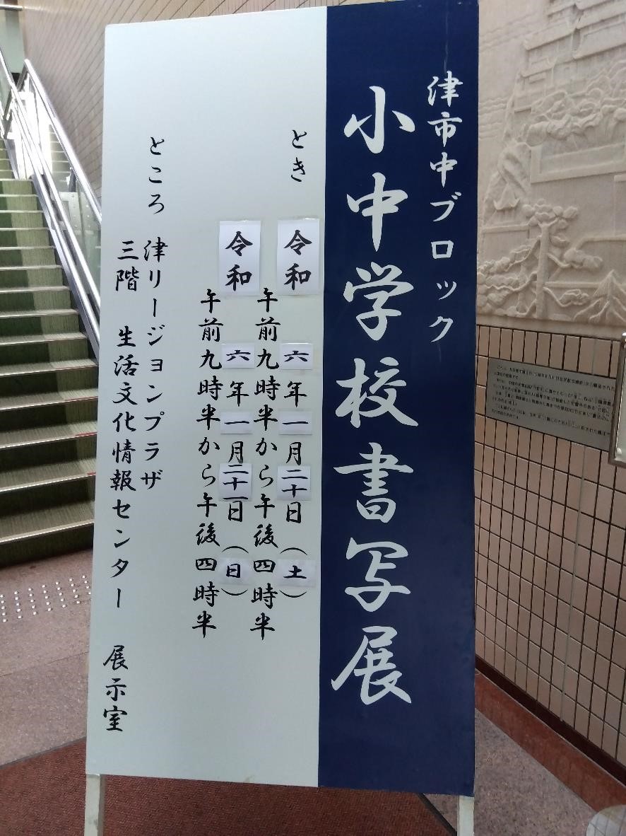20日(土)・21日(日)の両日、リージョンプラザで津市中ブロック小中学校書写展が開催されました。本校からは、1~3年生まで22の作品が展示され来場者たちに見ていただきました。どれも力作で、作品に込められた強い決意を感じました。