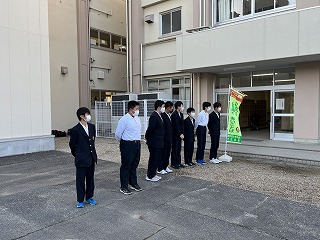 朝のあいさつ運動がPTAと体育安全委員のコラボで行われました。