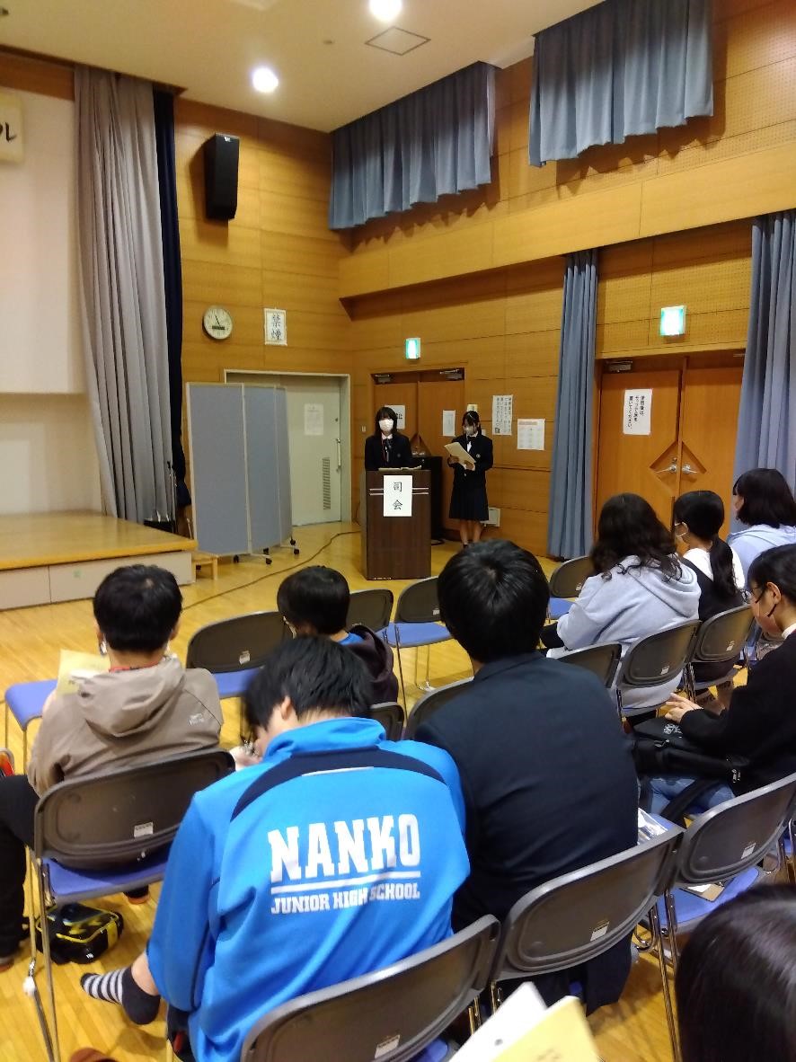 11日(土)に高茶屋市民センターで、南郊中学校区子ども人権フォーラムが開催されました。本校からは、人権サークル+フォーラム運営の有志18名が参加し、中心になって会の運営を行いました。今年は、小学生と一緒に考えたいことを動画にして、事前に小学校に渡したり、大人が行っている実行委員会に中学生も参加したりと、より中学生が主体的に参加できる新たな試みを行いましたが、中学生の働きはこちらの期待を大きく超えていました。その中学生の姿を見て、集まった小学生が「自分も中学生になったら・・・」と思ってくれることで、いい流れができていけばいいなあと思います。