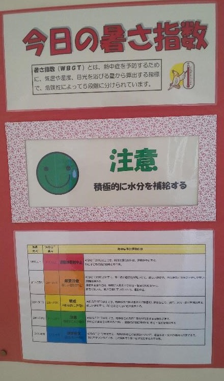 保健室前でも「暑さ指数」を掲示し注意を呼び掛けています