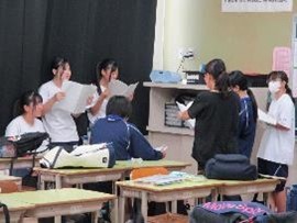 1月21日(土)、第2学年では多目的ホールにて、和楽器と洋楽器のアンサンブルの演奏を聴いたのち、百人一首大会を行いました。