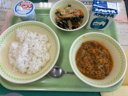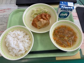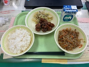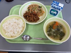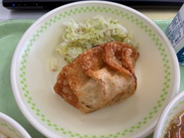 麦飯  牛乳 津ギョウザ  ごまキャベツ  春雨スープ