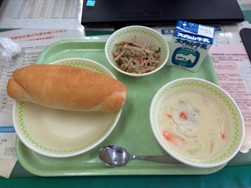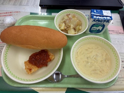 米粉入りパン  牛乳  さつまいものシチュー  ごぼうサラダ