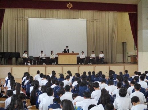 9月2日始業式の後、伝達表彰式を行いました。学校便りにも掲載しましたので、ご覧ください。
